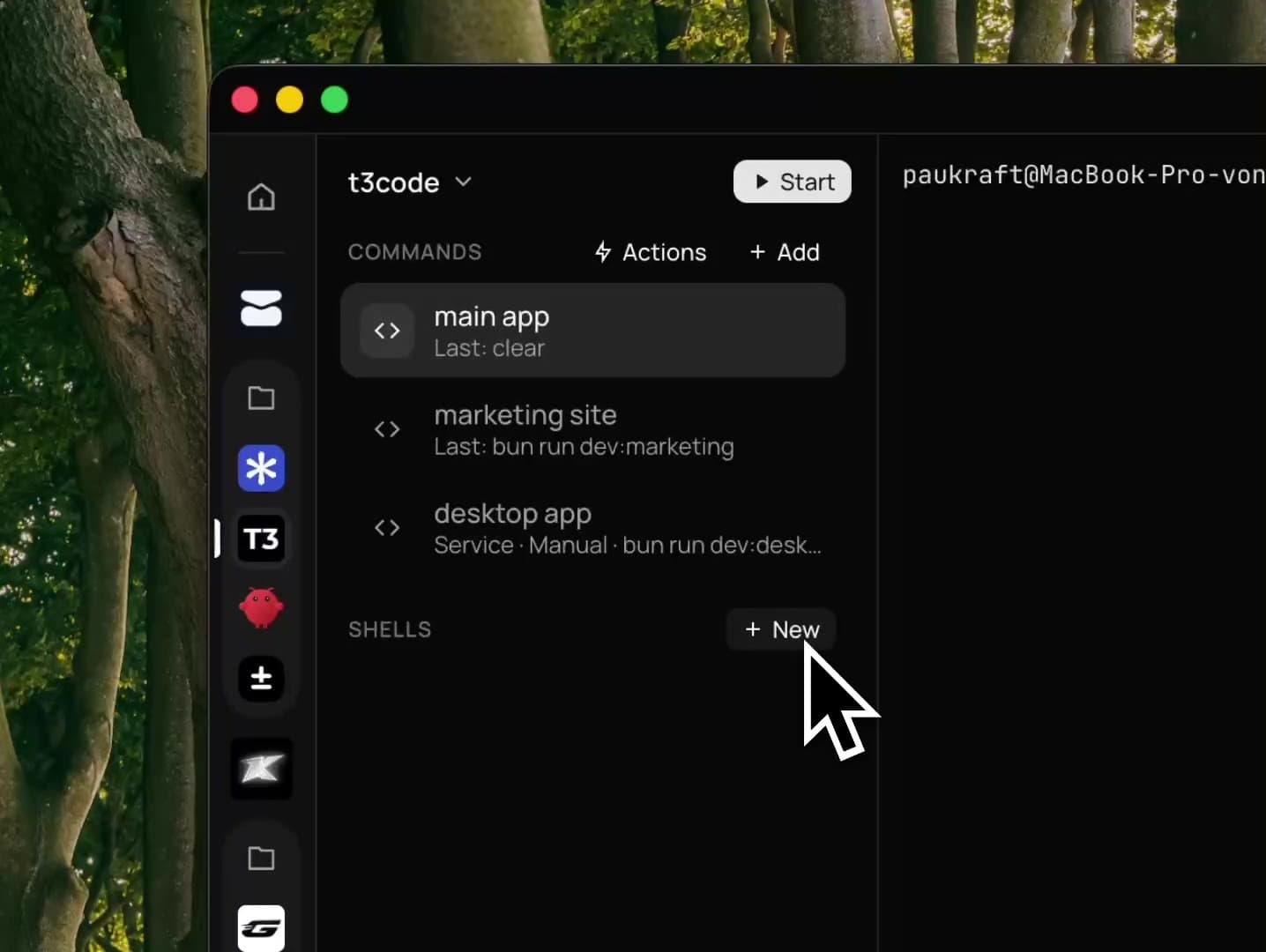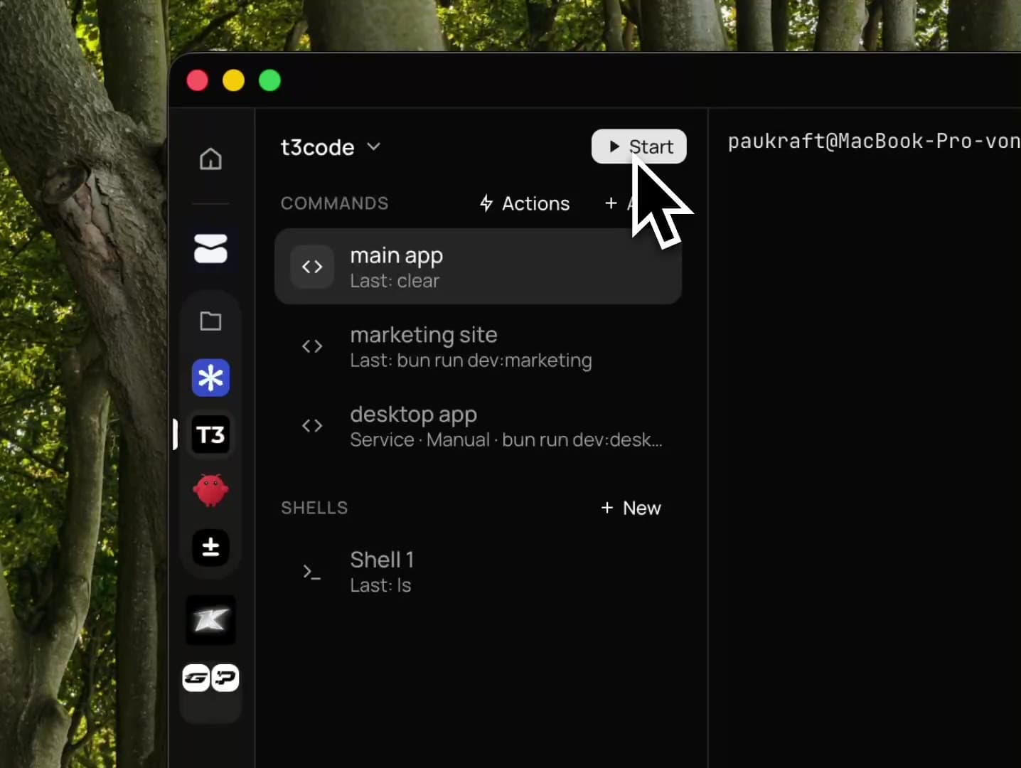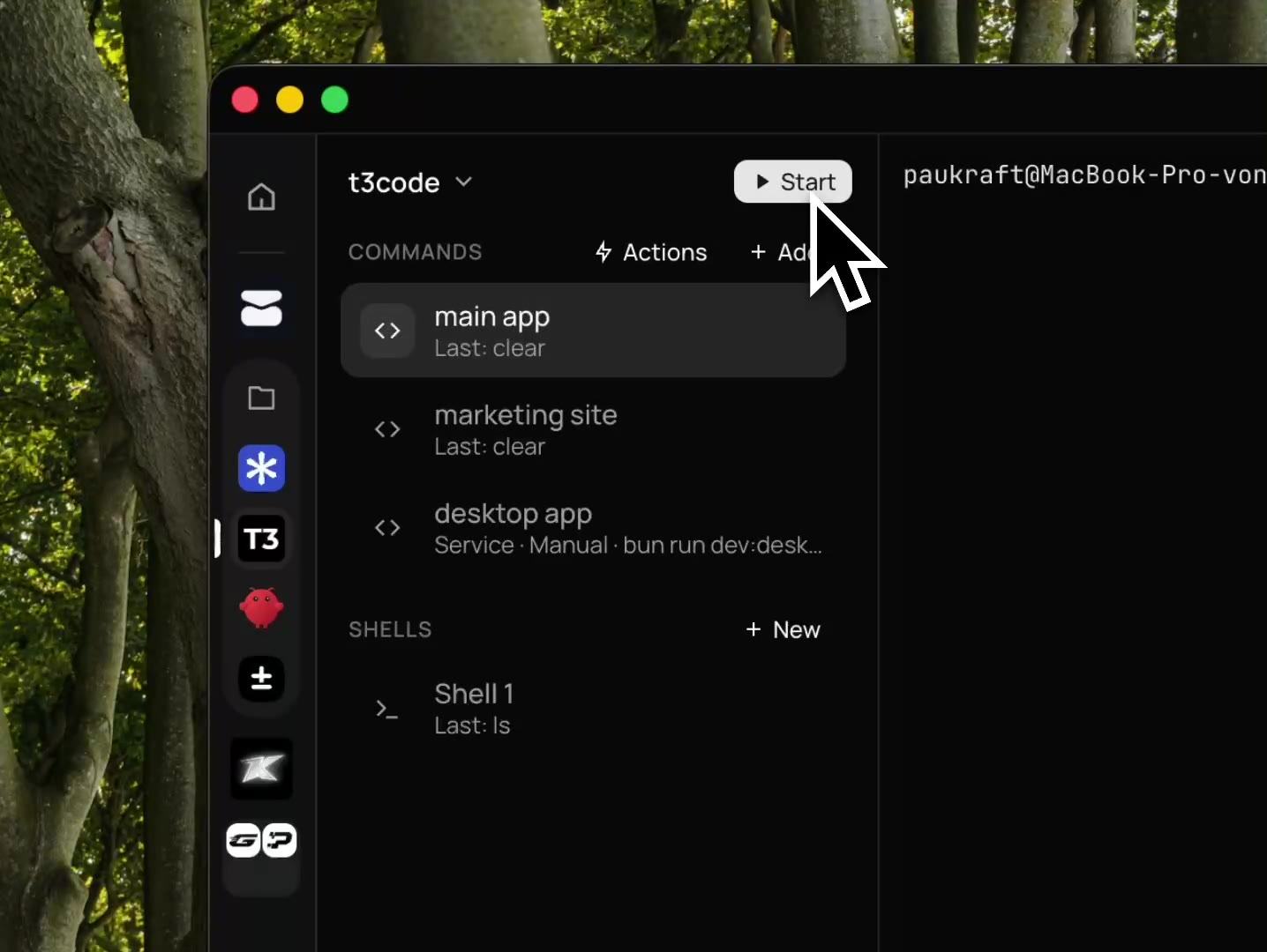 Add the commands each project needs, like npm run dev or docker compose up. Share them with your team via the repo, or keep them local to your machine.